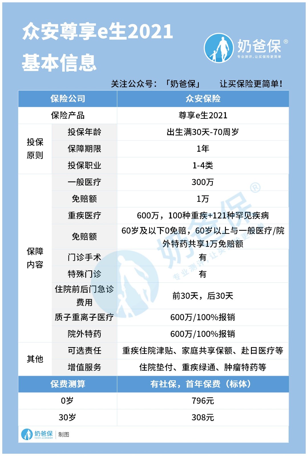 尊享e生2021是众安保险新推出的百万医疗险产品,重疾医疗保额有600万元。