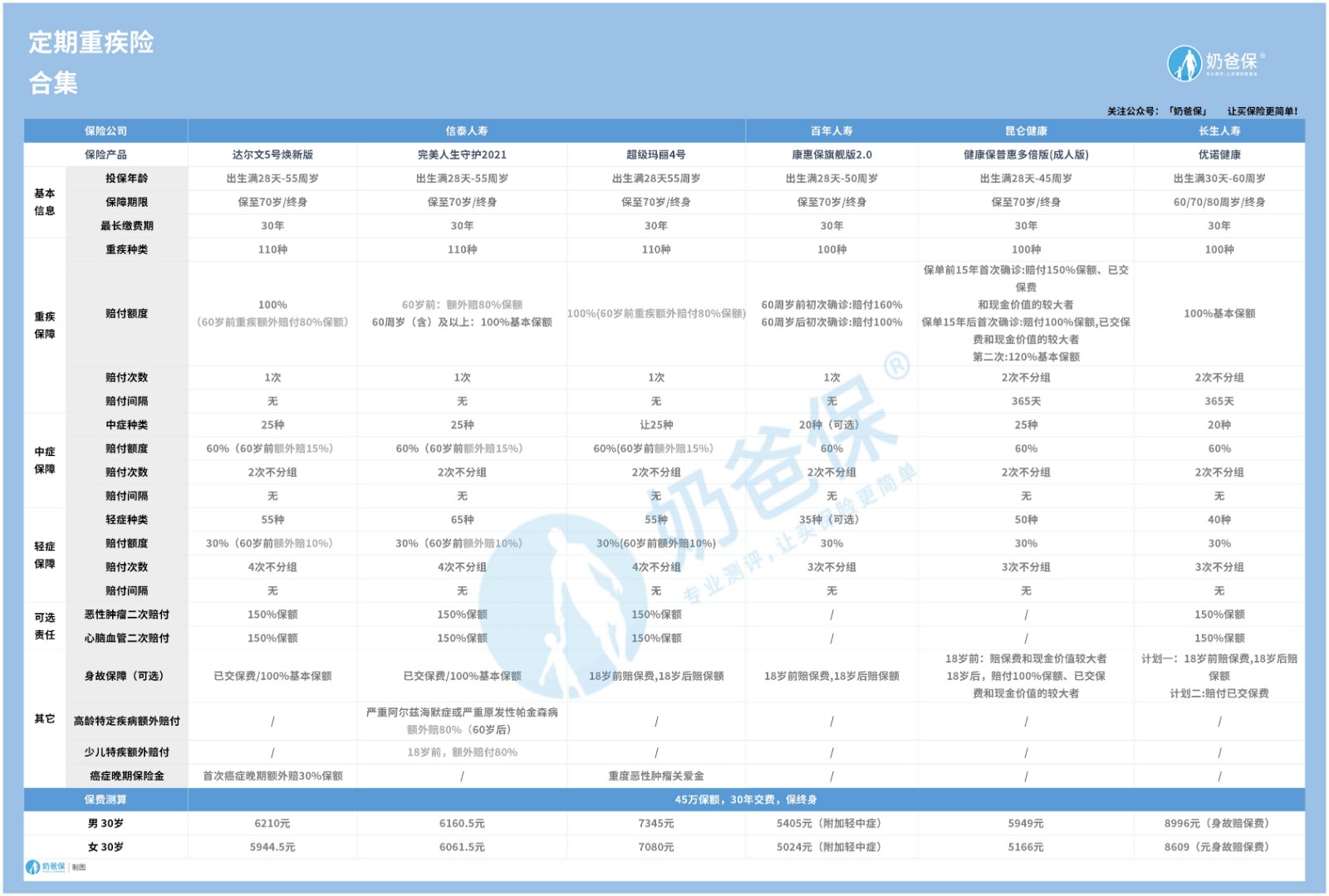 如果你想了解更多定期重疾险和终身重疾险的区别,可以添加naibabao99或者关注“奶爸保”公众号咨询。
