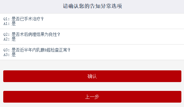 奶爸通过测试发现,如果乳腺结节患者已经接受手术,且术后病理结果为良性,近半年内乳腺B超检查正常就可以按照标体承保。