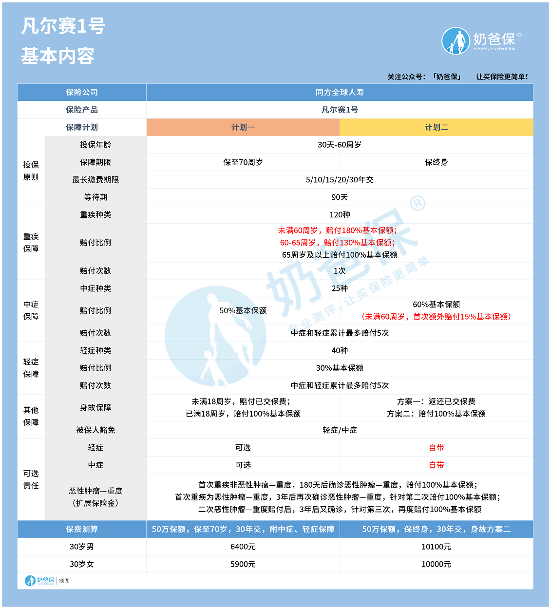 奶爸今天就来详细测评一下同方全球凡尔赛1号重疾险: