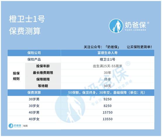 前面我们还提到了多次赔付的产品,奶爸就拿富德生命的橙卫士1号作为例子,给大家看看价格: