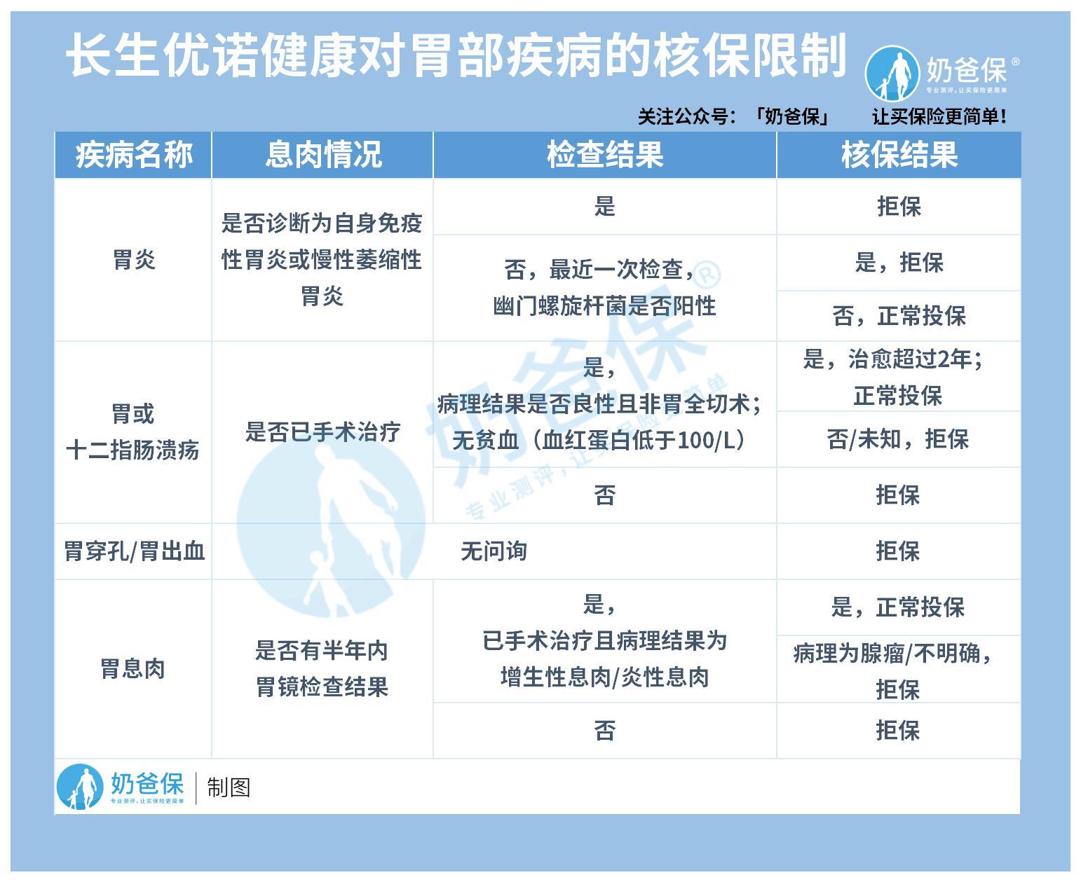 长生优诺健康重疾险对胃部相关疾病的问询奶爸已经收集整理在一起了,如下表: