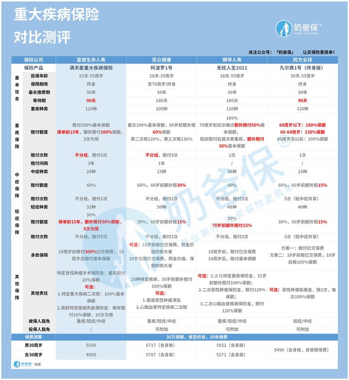 这里奶爸分为两个部分进行分析,一个是针对重疾,另一个是综合其他保障责任。