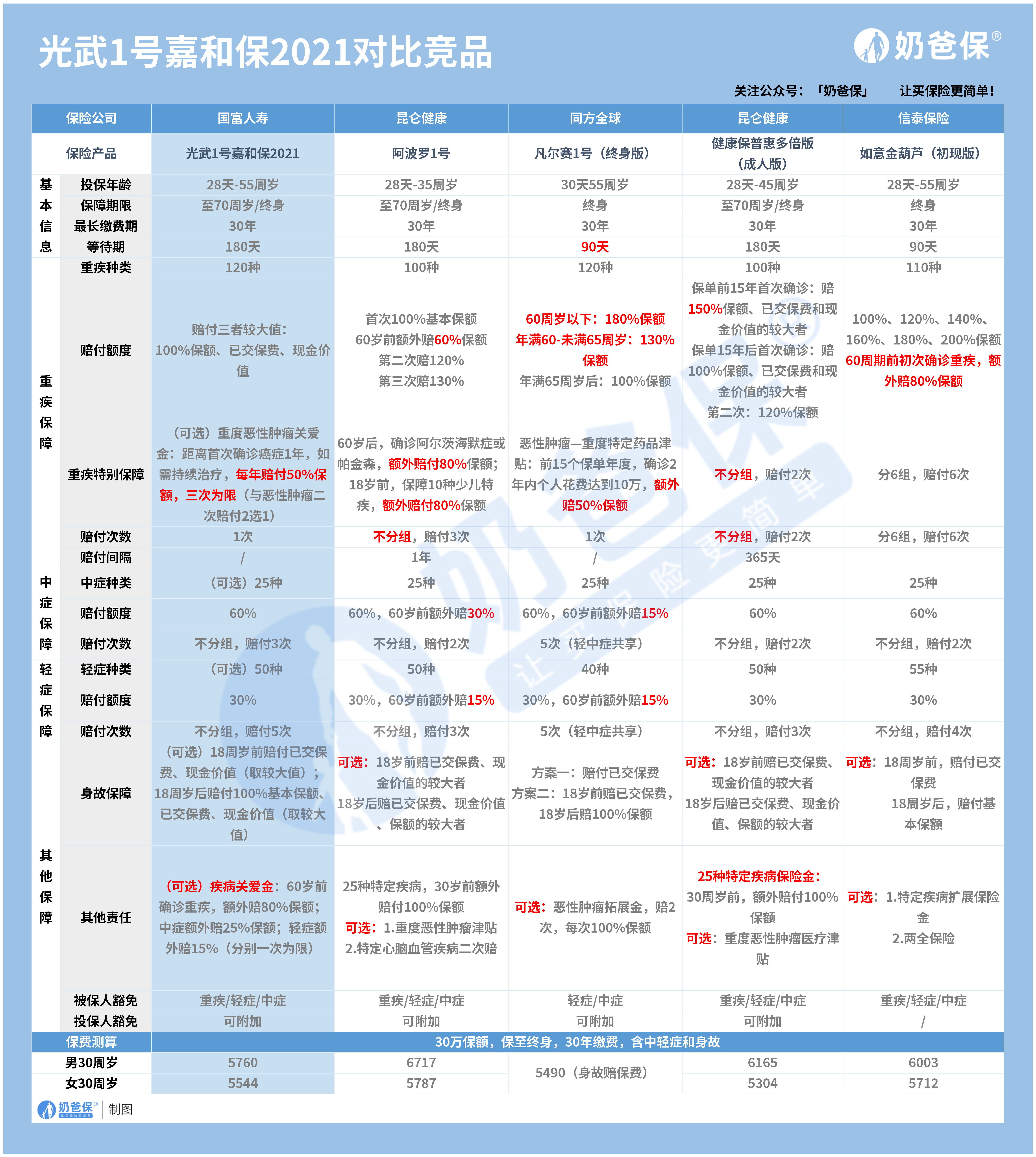 老规矩,我们来看下横向对比图,从对比中了解嘉和保2021是否适合你: