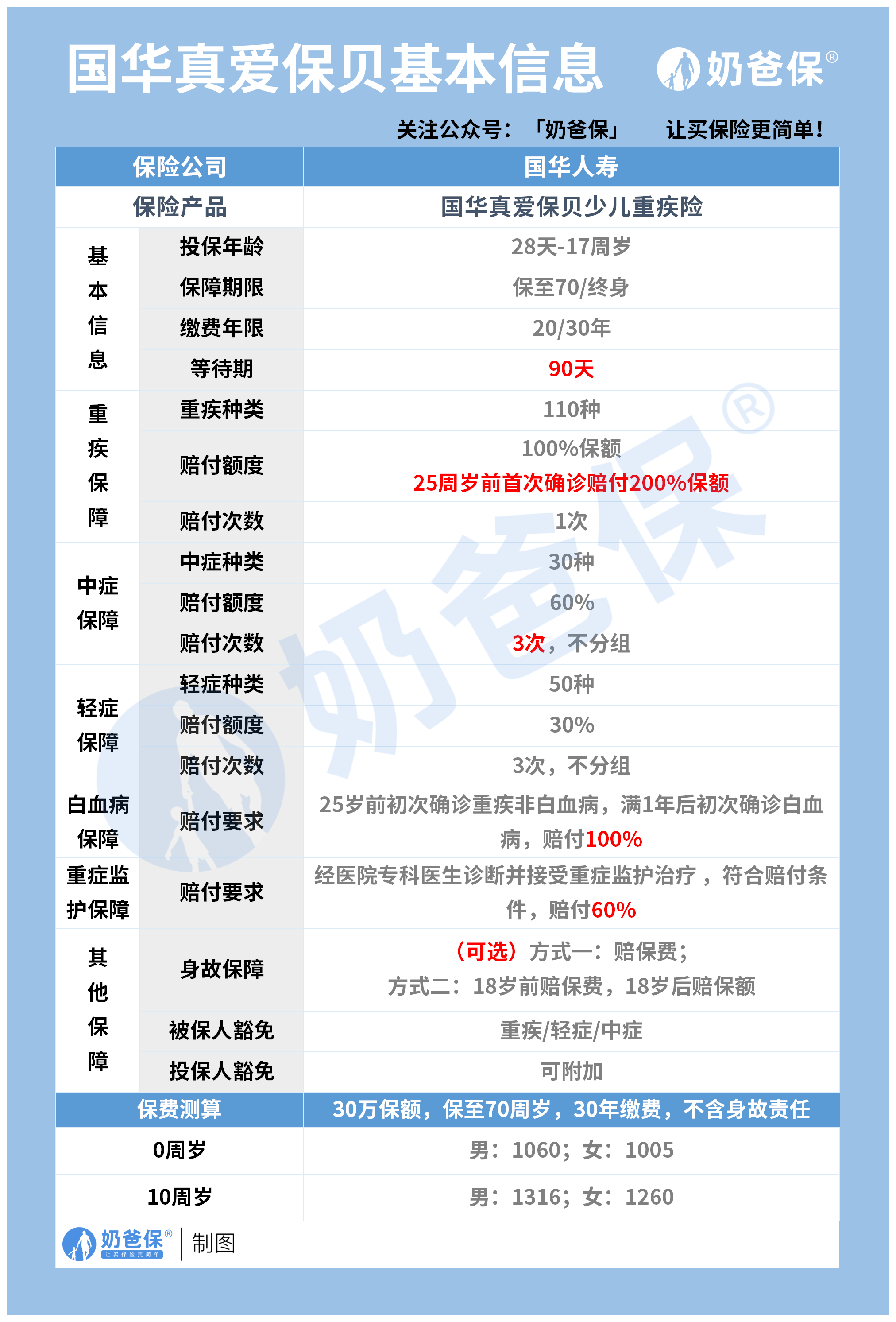 而且,还有银保监会的严格监督,国华人寿还是比较靠谱的,我们可以放心投保它旗下的保险产品,比如真爱保贝少儿重疾险。