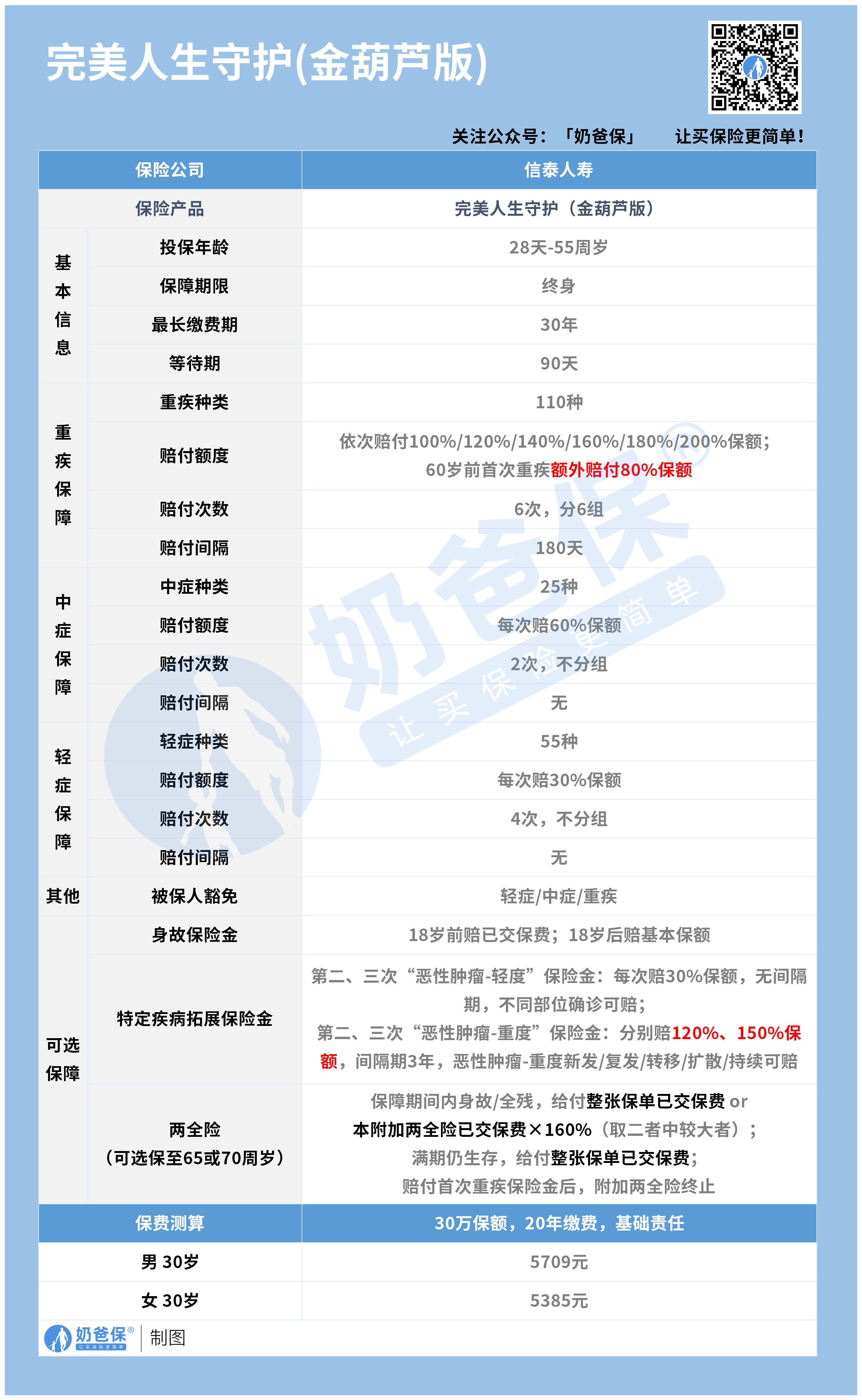 信泰人寿2022金葫芦重疾险的主要内容,奶爸在下面的测评表中已经做好了整理,如下: