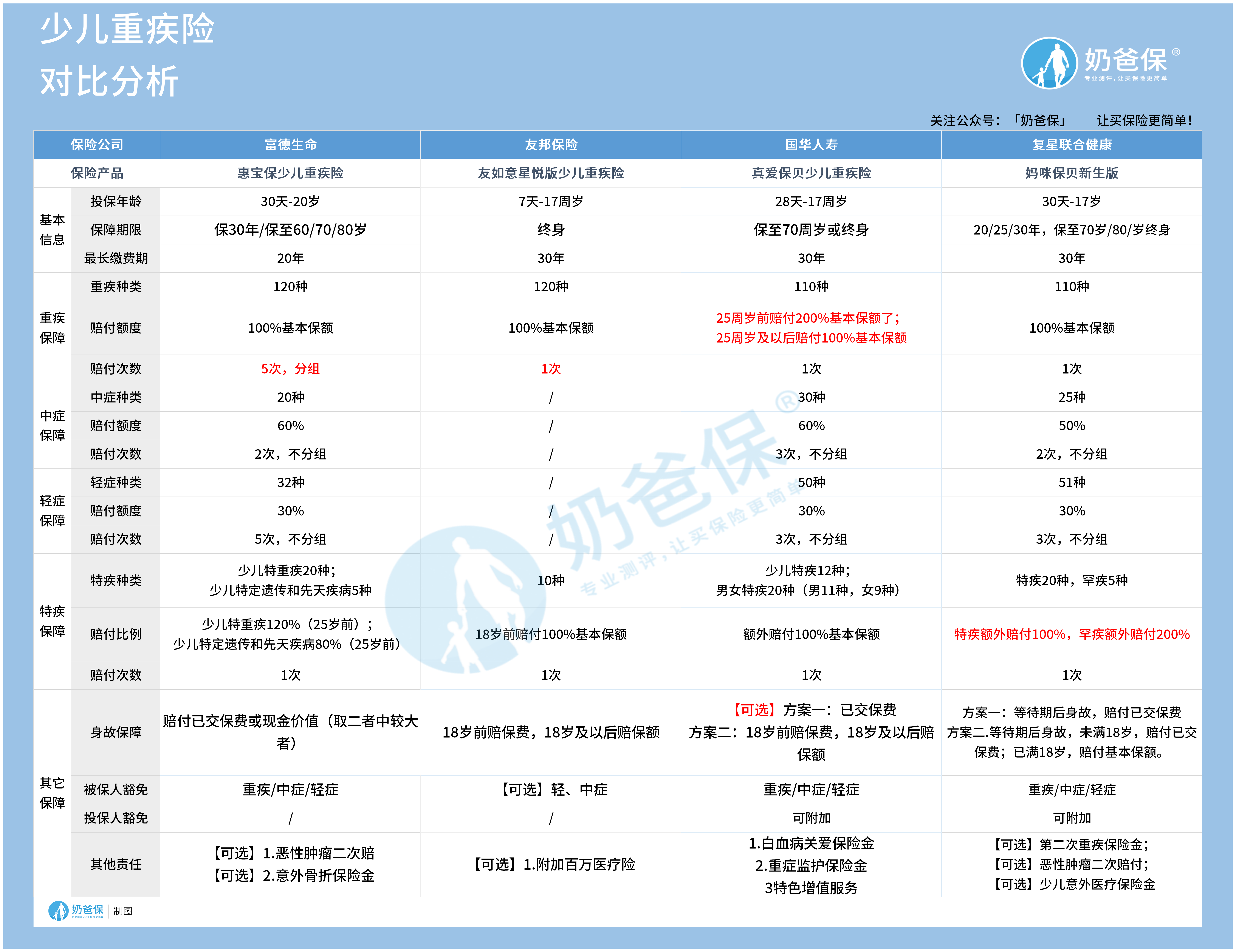 奶爸这里为大家备了一份热门少儿重疾险的榜单,我们可以一起来看看少儿重疾险的产品形态:
