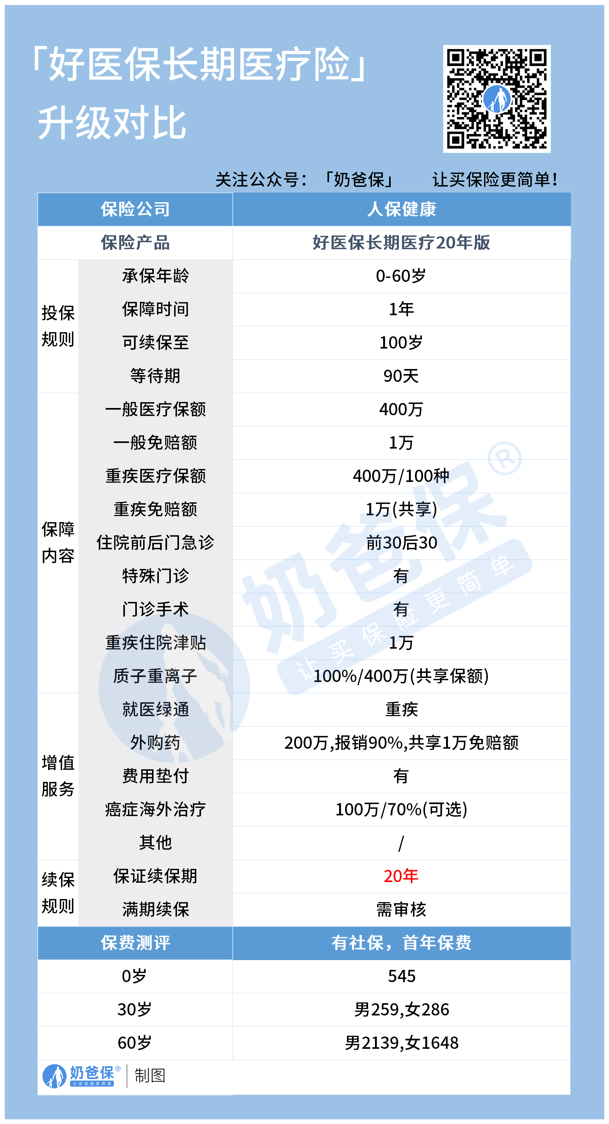 如果你想了解更多保证续保的产品,可以微信搜一搜关注“奶爸保”咨询。