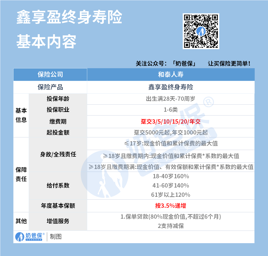下面奶爸就为大家盘点一下鑫享盈终身寿的优势。