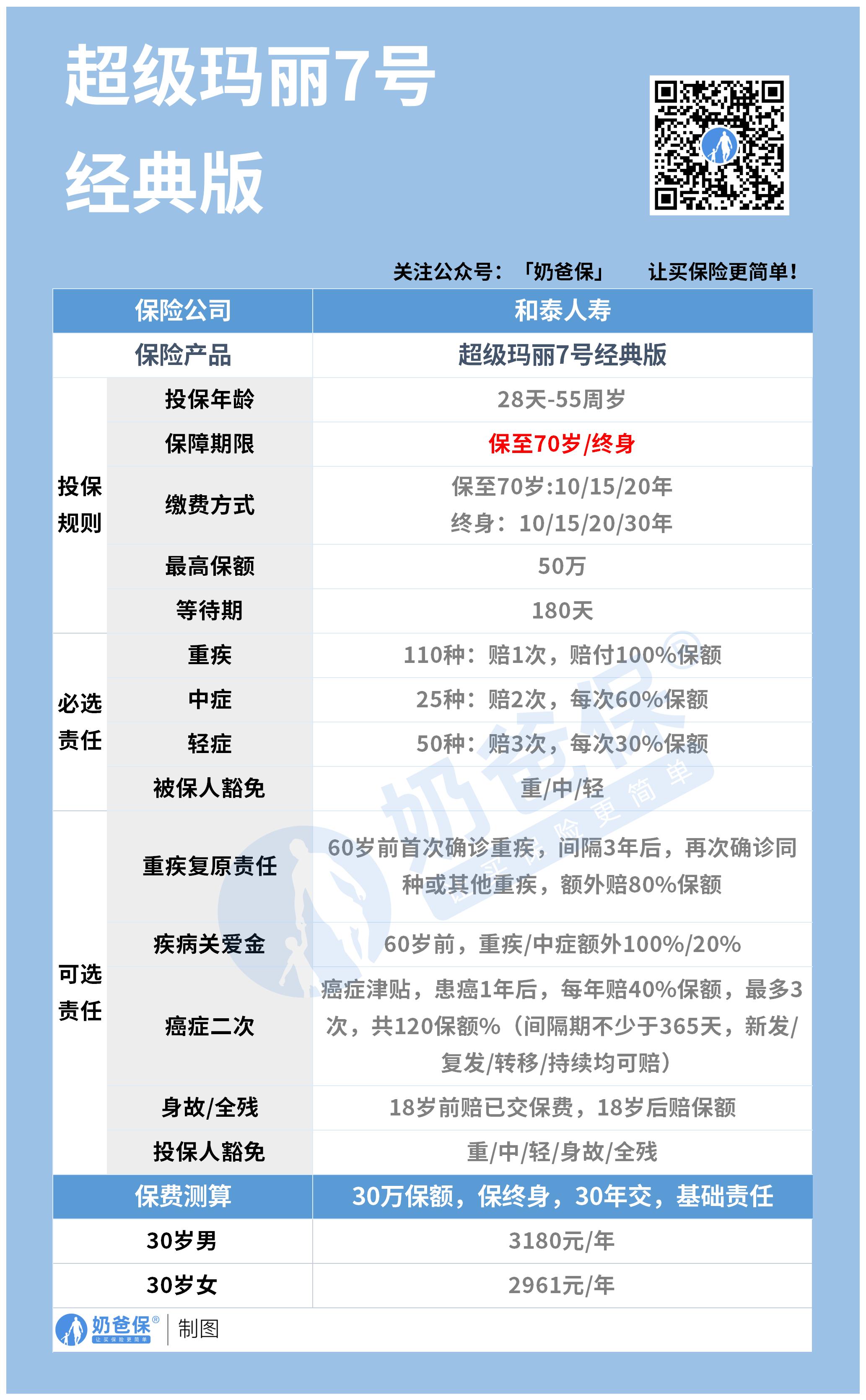 超级玛丽7号经典版虽然没有太多的惊喜,但放到当下的重疾险市场,仍是非常能打的存在。