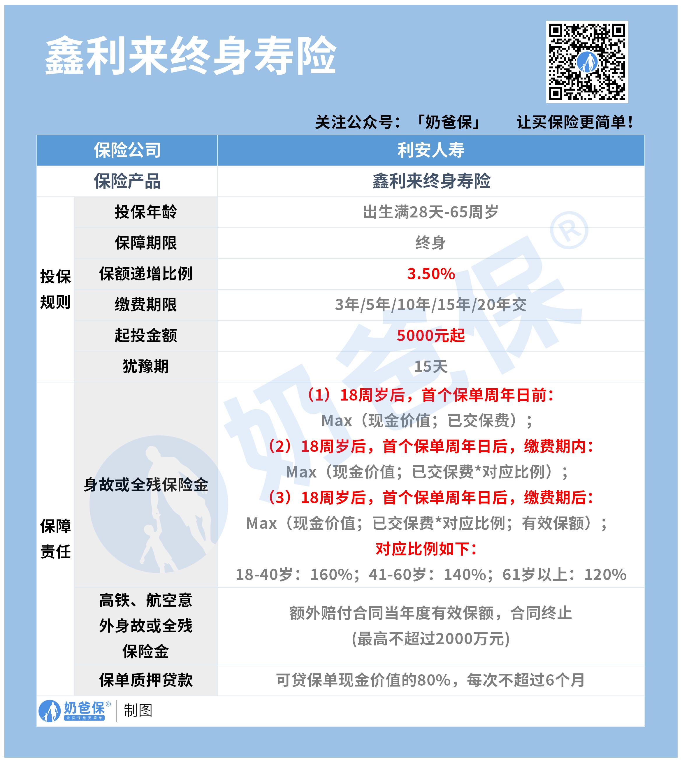 今天奶爸就来和大家聊聊利安鑫利来终身寿险。