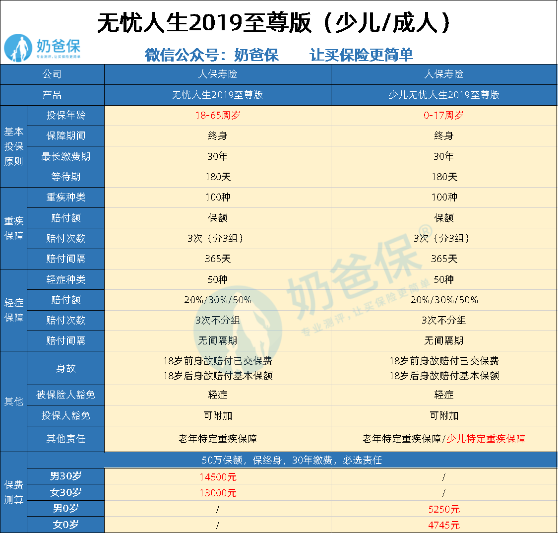 前面奶爸也已经说过,无忧人生重大疾病保险(至尊版)少儿版和成人版差别不大。