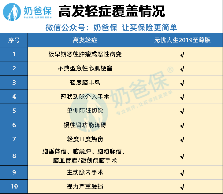 在高发轻症方面覆盖还是很全面的,但缺点在于首次轻症赔付保额过低,实用性不大。