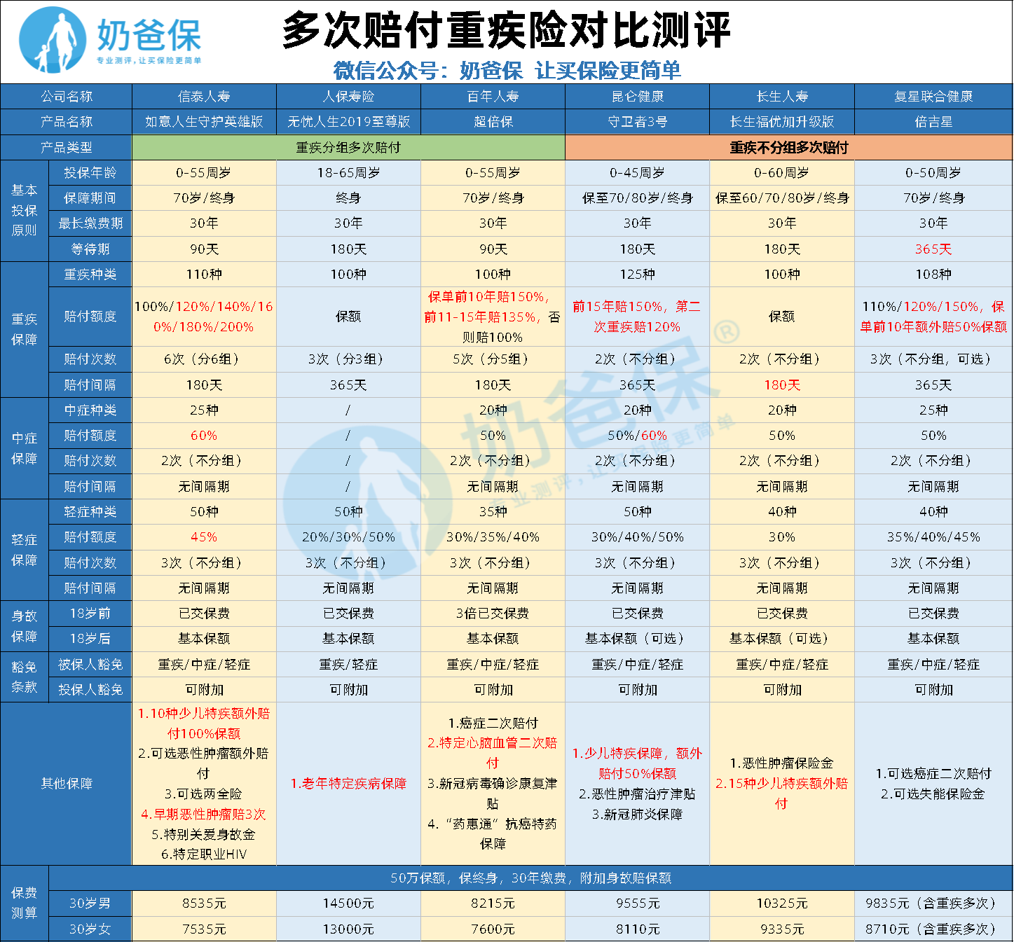 关于多次赔付重疾险更全面的测评,点击左边关键词。