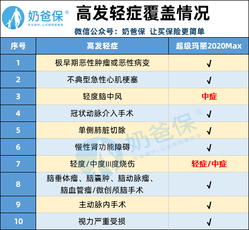 经常看奶爸的测评文章的就知道,奶爸有个习惯就是在分析中症/轻症的保障的时候会看看其高发轻、中症的覆盖情况。