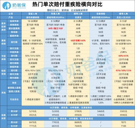 奶爸挑选了咨询的人比较多的重疾险进行对比: