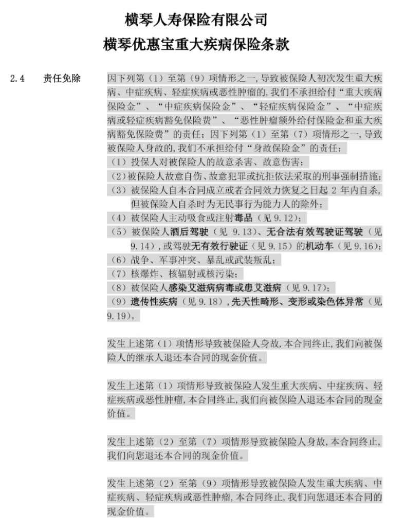 但横琴人寿优惠宝的条款内容,你又了解多少?哪些情况不保,你真的知道吗?