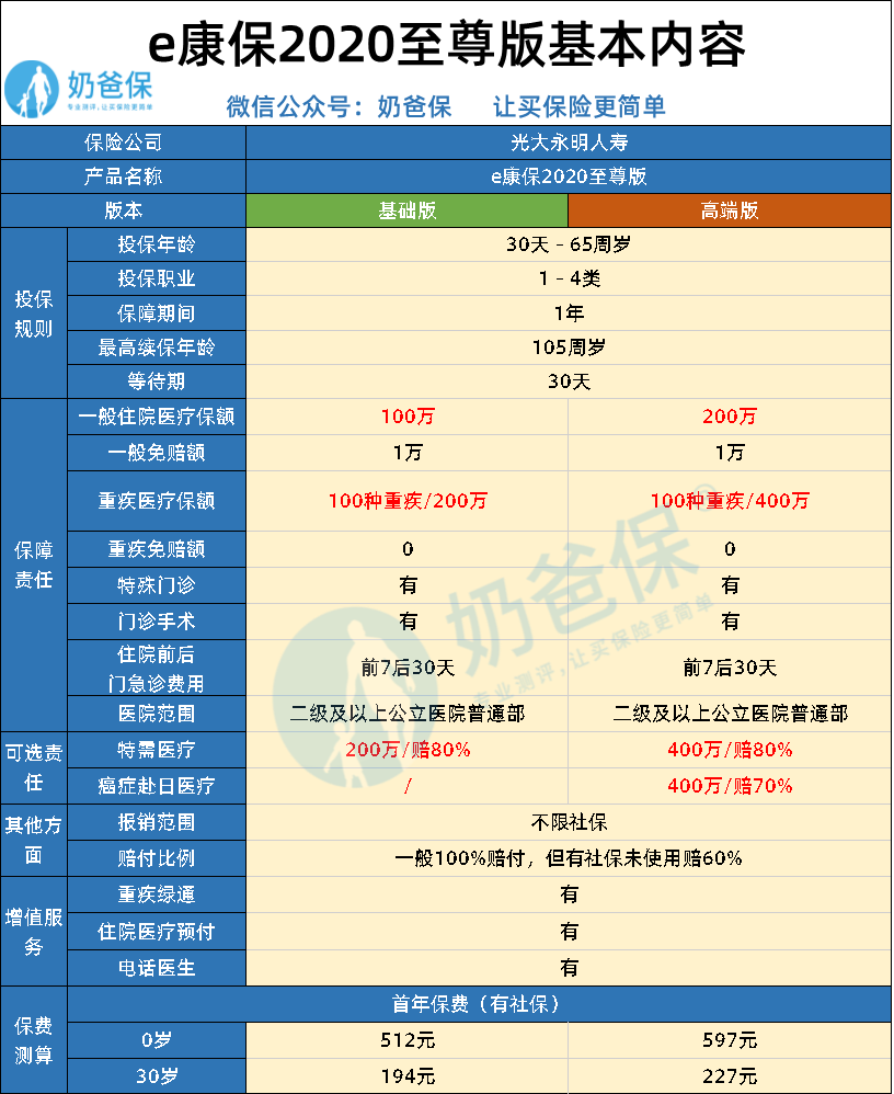 关于e康保2020至尊版医疗险,奶爸上次已经详细分析过它的保障内容。