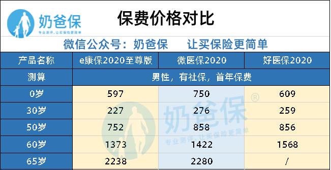 与大家熟悉的好医保2020和微医保2020进行保费对比: