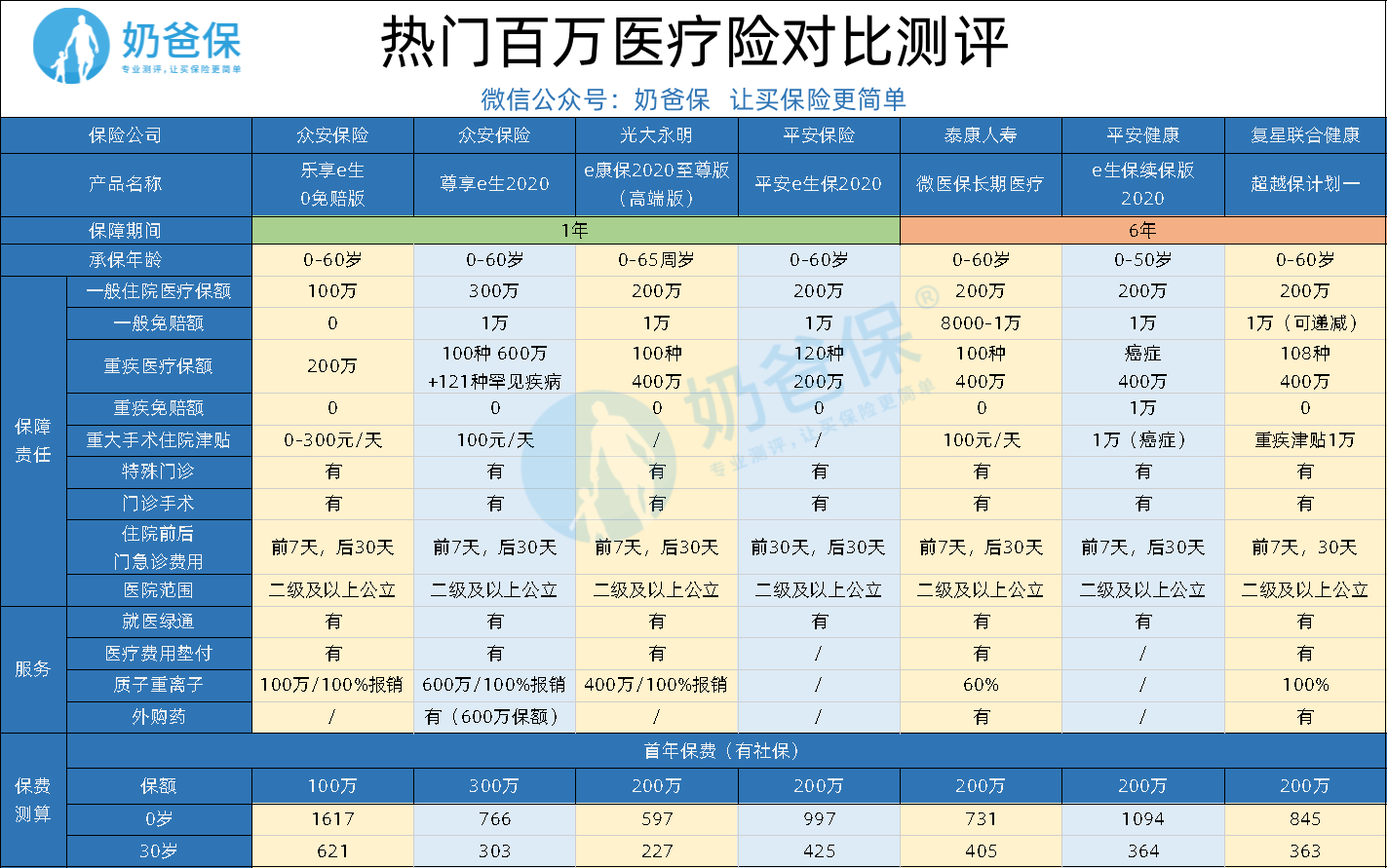 奶爸搜集了几款最近比较热门的百万医疗险和e康保2020至尊版对比,大家先看图: