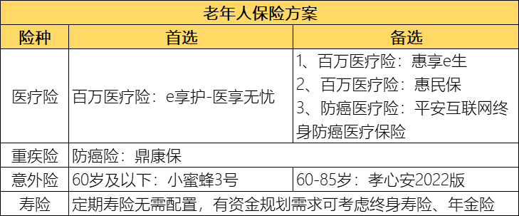 而老年人的保险配置方案,与成年人和小孩的方案区别还是蛮大的。