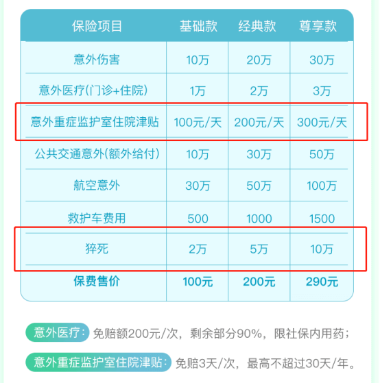 还有部分意外险可以附加住院津贴以及猝死的保障。