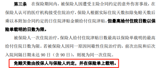有些是在保险条款中明确了免赔天数,有些则是在保单中体现的。