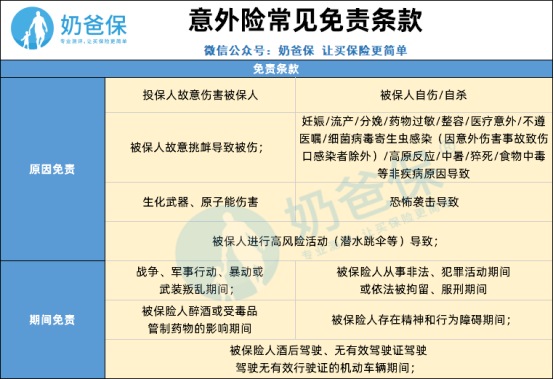 对于意外险来说的话,由于其保障比较简单,奶爸一般会注意保险责任,责任免除这两点。