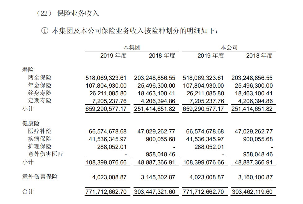 保险业务的收入情况可以反映保险公司的经营情况,也可以从侧面反映出受消费者欢迎的程度。
