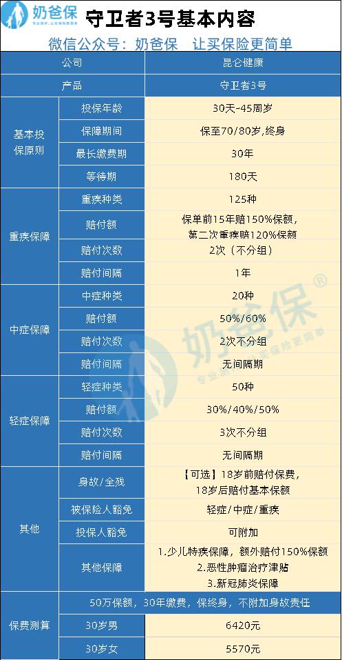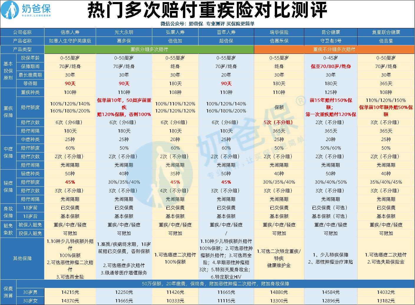 奶爸特意找来市面上热销不分组重疾险与昆仑守卫者3号进行对比测评。