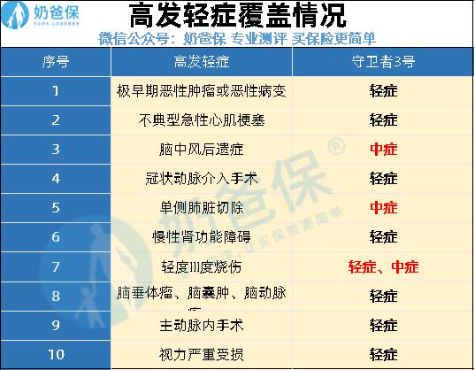 但只看轻症数量不看是否包含高发轻症便是耍流氓,守卫者3号高发轻症覆盖情况如何呢?