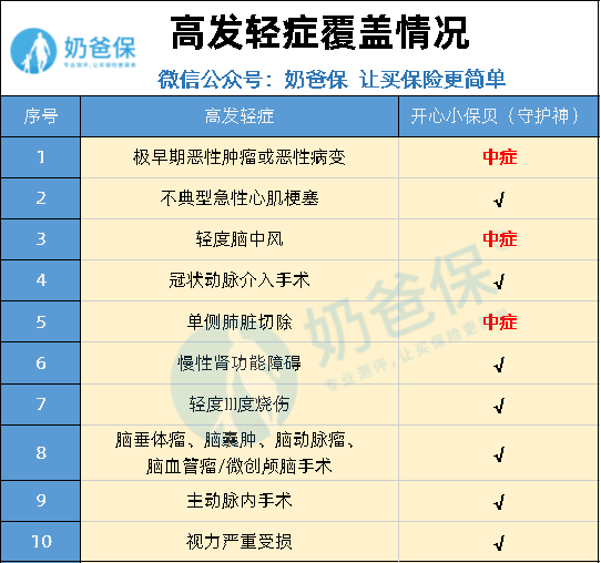 老规矩,对于轻症以及轻症的保障,要重点关注高发的保障情况:
