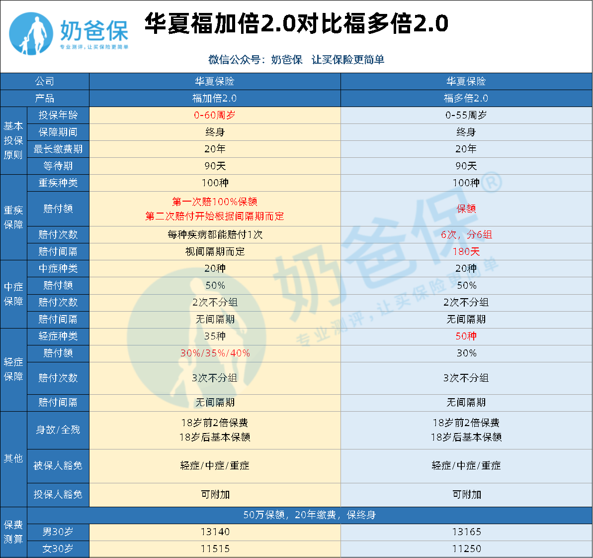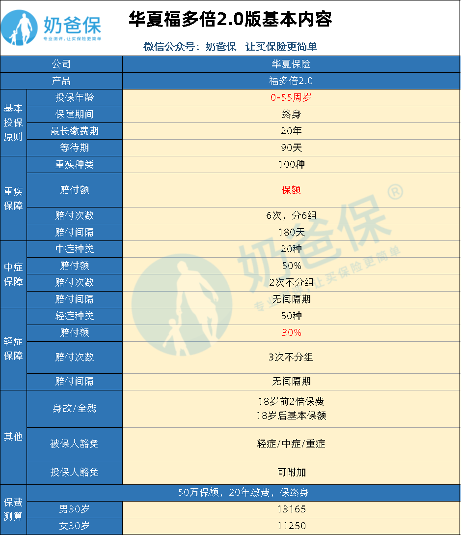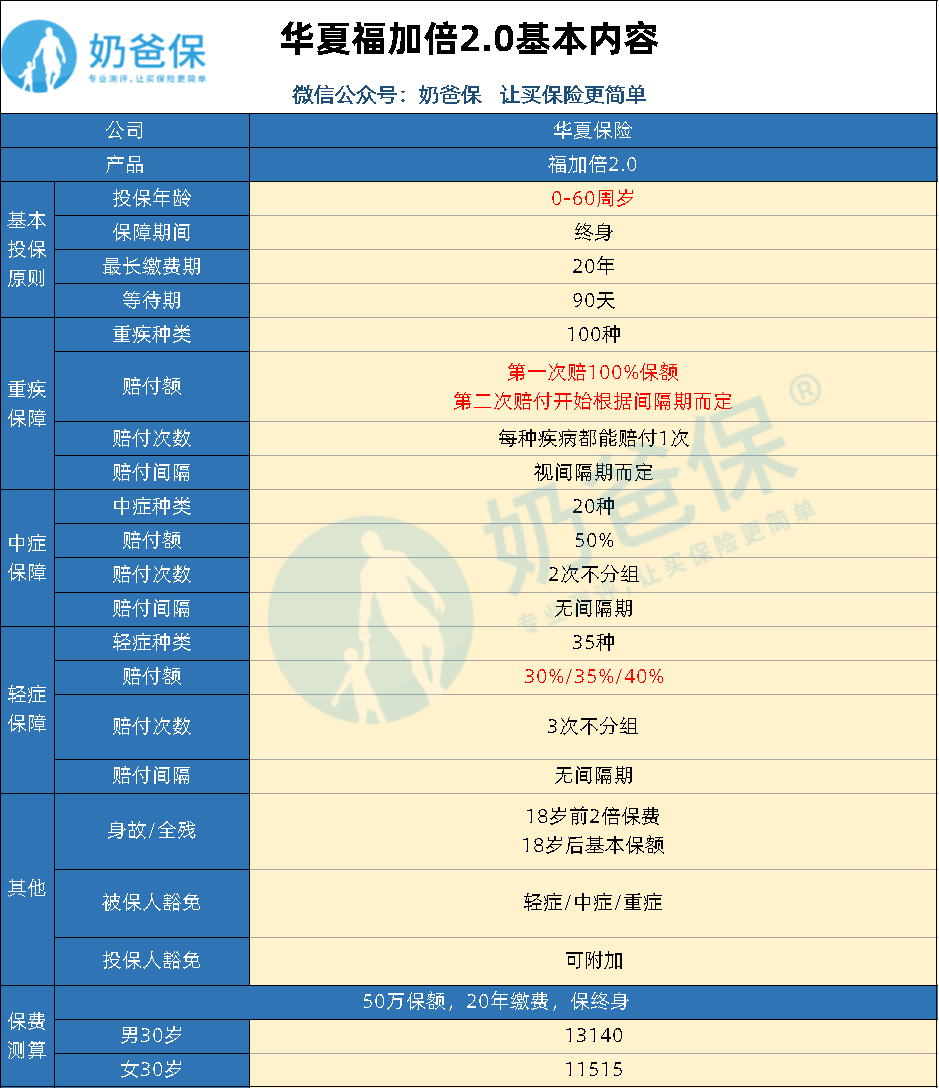 那么华夏福加倍2.0对比华夏福多倍版2.0,哪款的性价比更高呢?今天,奶爸就来讲讲两款产品的区别。