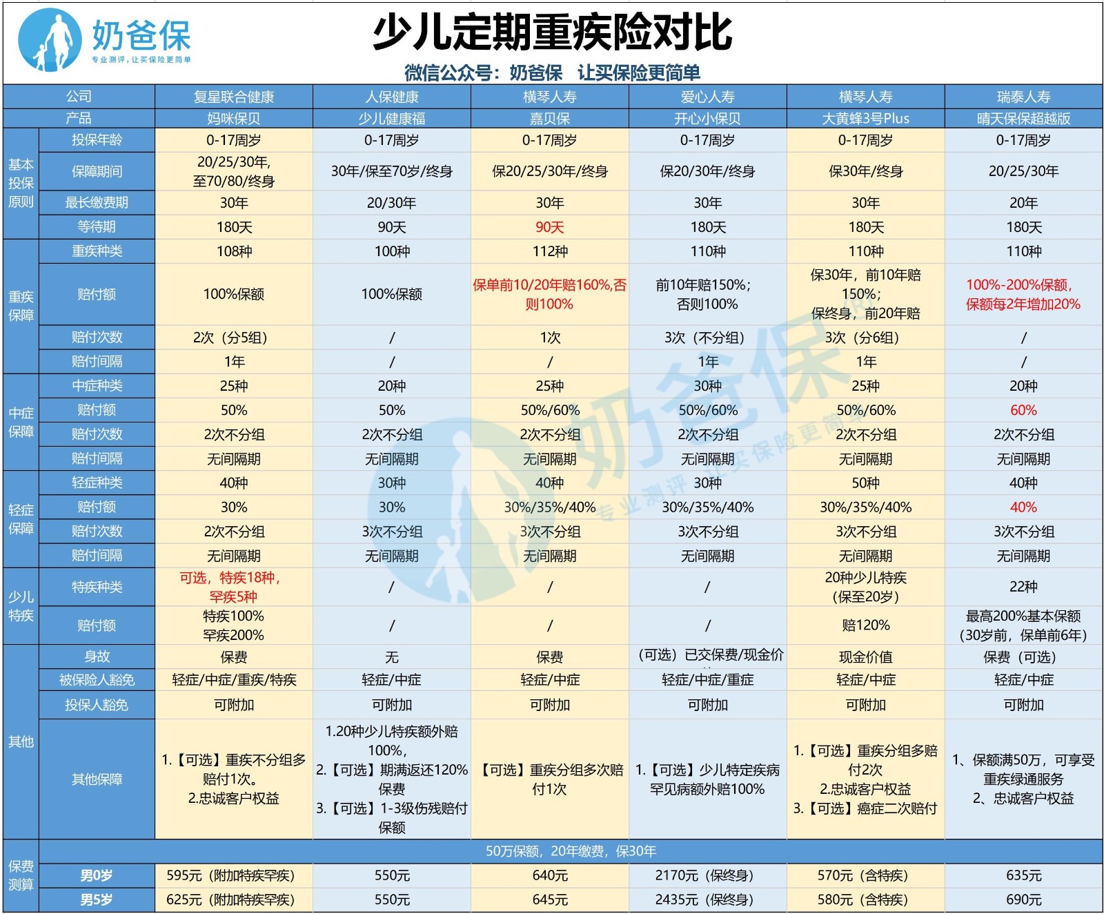 奶爸找了市面上多个热门的少儿重疾险进行了对比,供大家参考。