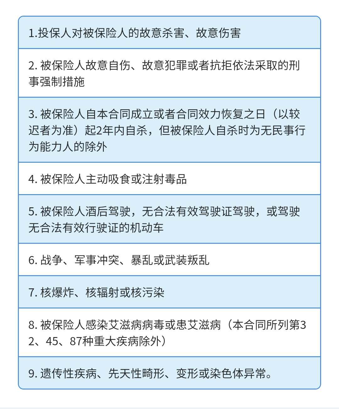 保单不保的风险或事故称为除外责任,因为它不在承保范围内,所以就算发生也不能获得赔偿。
