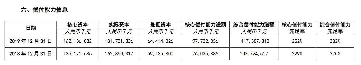 中国人民保险2019年度的核心偿付能力充足率为252%,综合偿付能力充足率为282%,在业内属于比较好的水平了。