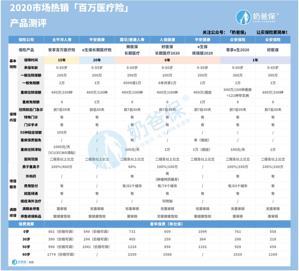 奶爸整理了不同保证续保期限的热门百万医疗险,方便大家对比挑选: