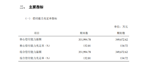 我们可以看到:信泰保险的核心偿付能力充足率为132.01%,综合偿付能力充足率是132.01%,均符合银保监会的相关指标。
