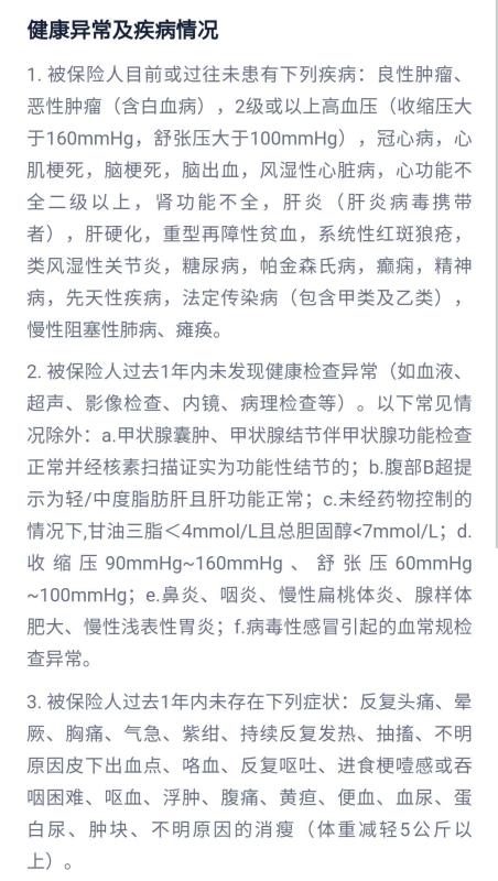 健康告知较为严格,会问询肝炎等高发疾病的既往症情况,还会问询过去一年内是否有反复头痛、胸痛等多种异常症状。