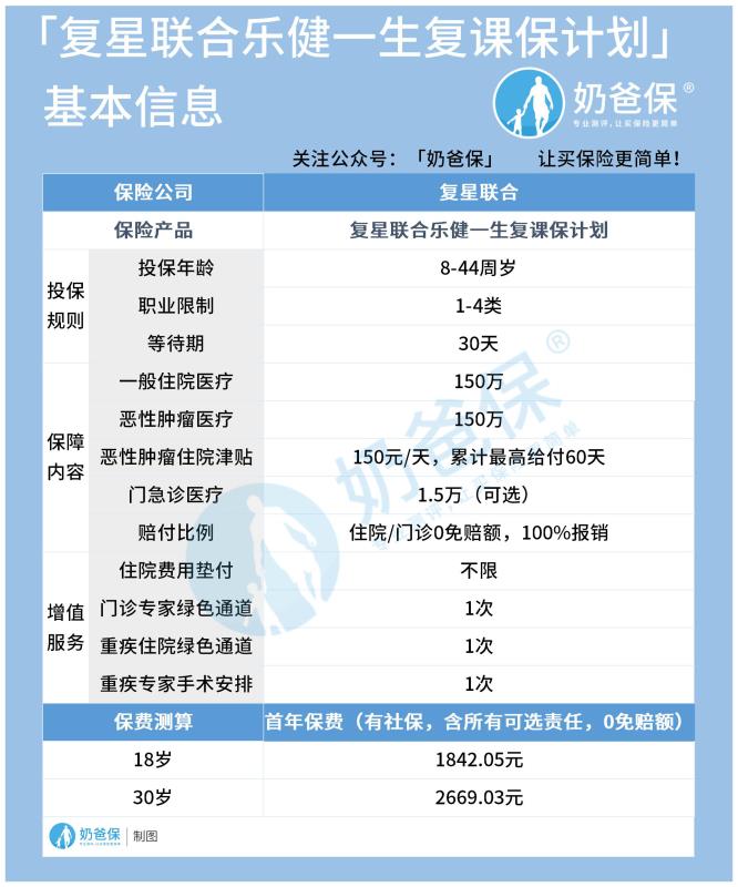因为复星联合乐健一生复课保计划是新品,所以有些信息奶爸尚未收集到,后续会跟进,想要了解的,可以关注奶爸。