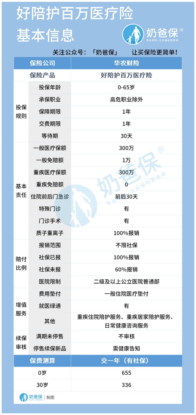 华农财险新推出了一款一年期医疗险——好陪护百万医疗险。
