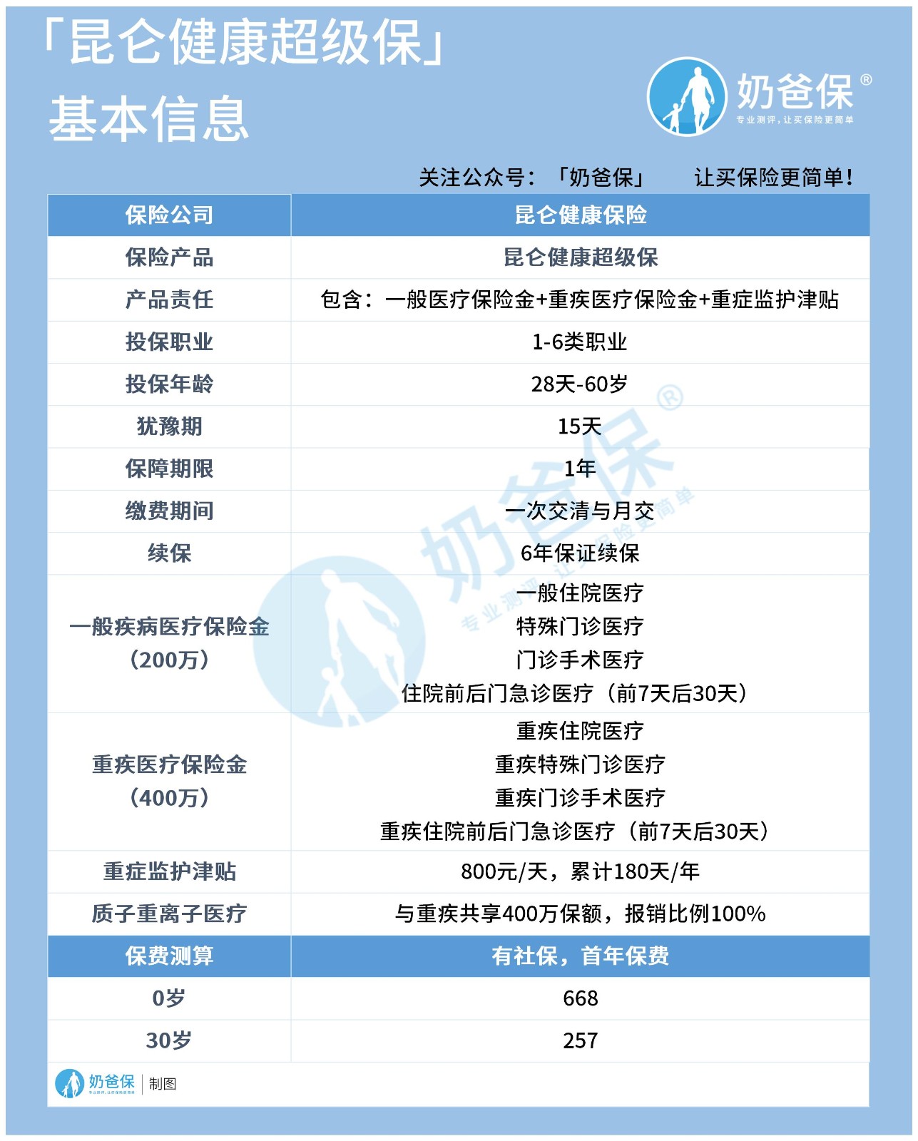 接下来奶爸将从四个方面对昆仑健康超级保展开分析: