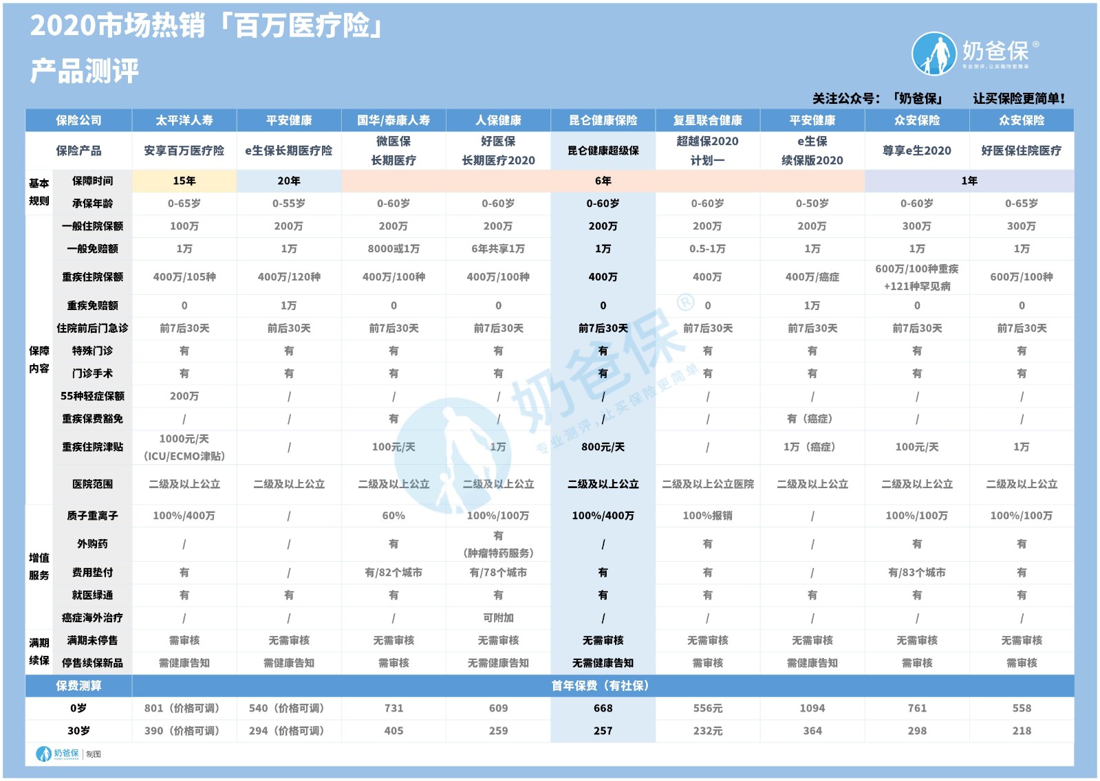 接下来奶爸就选择市面上比较热门的百万医疗险做一个简单对比测评: