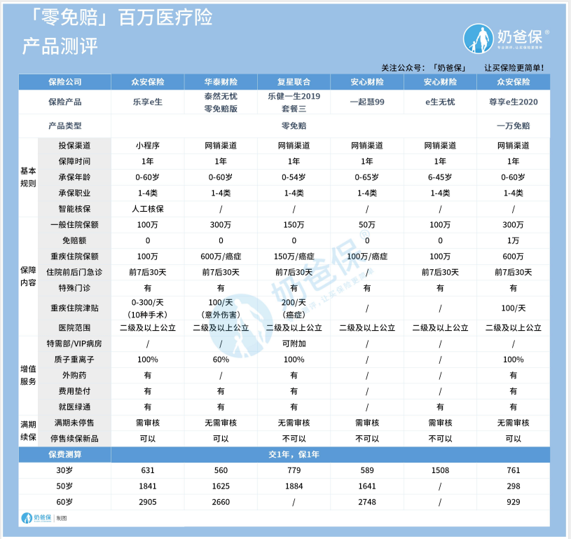 因为咨询0免赔的百万医疗险的小伙伴很多,所以奶爸通过一番搜索,将0免赔的产品做了个合集,我们一起看看。