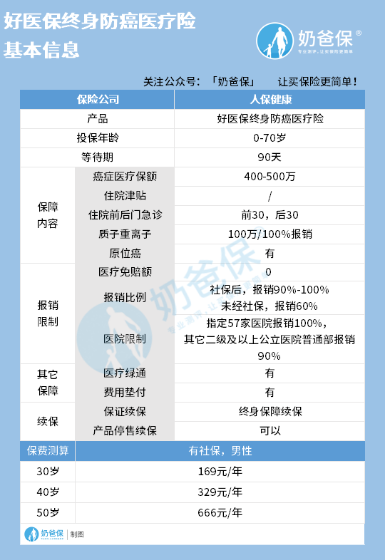奶爸前面也写过一篇细致讲解好医保终身防癌医疗险的文章,有兴趣的朋友可以去看一看《好医保终身防癌医疗险》。