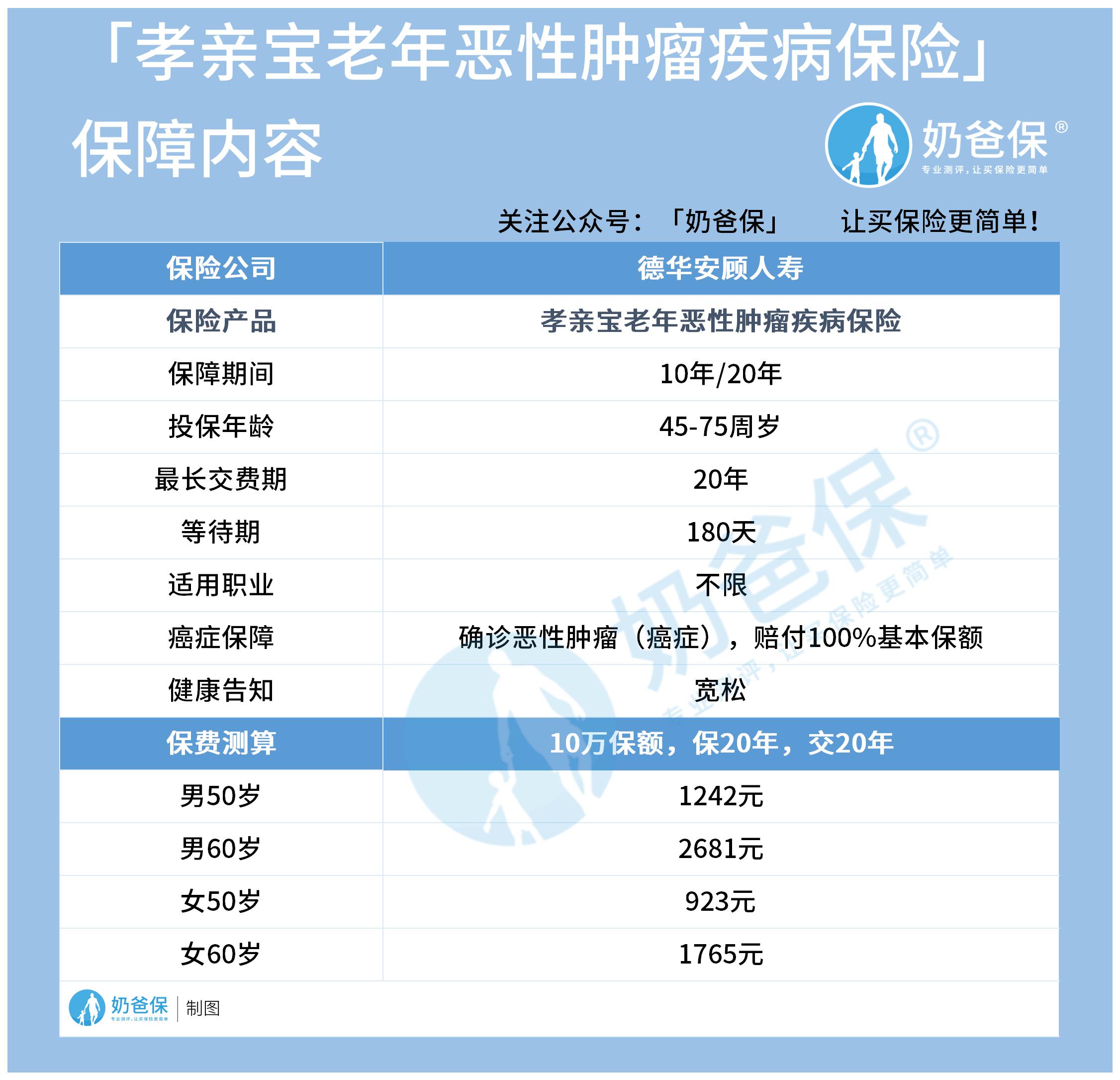 孝亲宝是德华安顾人寿推出的一款老年人防癌险,这款产品最主要的功能就是为老年人提供癌症保障。