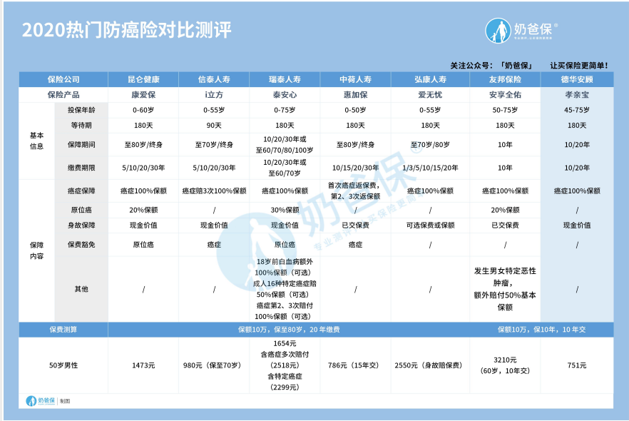 接下来奶爸将选取热门防癌险跟孝亲保做简单对比测评:
