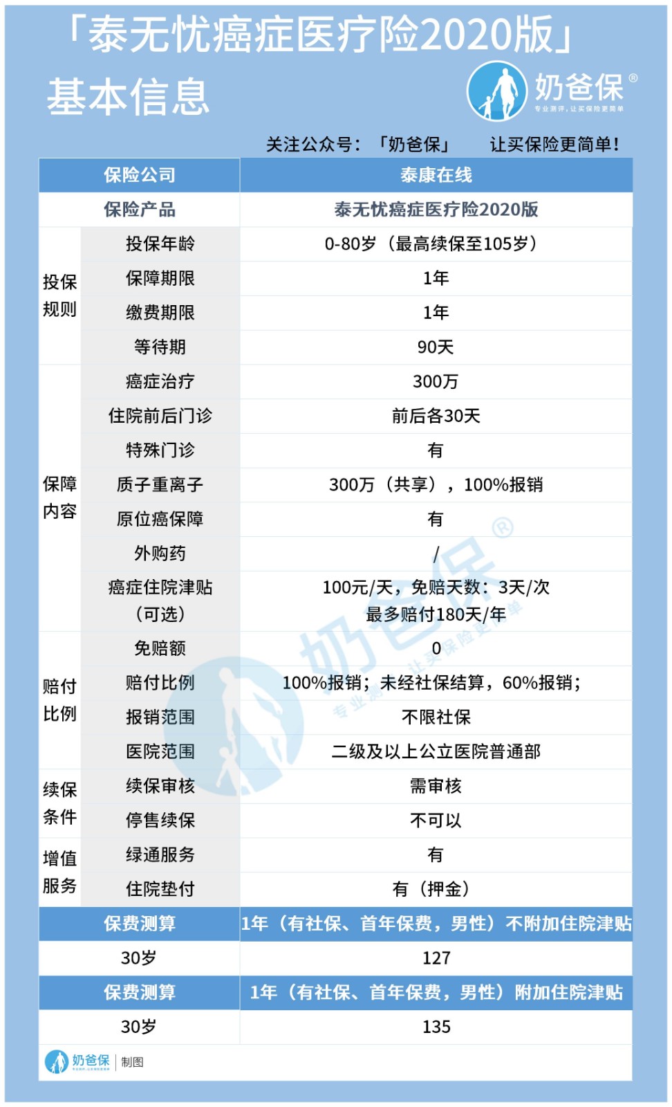 整体而言,泰无忧癌症医疗险2020版作为防癌险而言保障还是比较全面的,有癌症和原位癌保障,而且报销不限社保,不过续保条件比较严格。