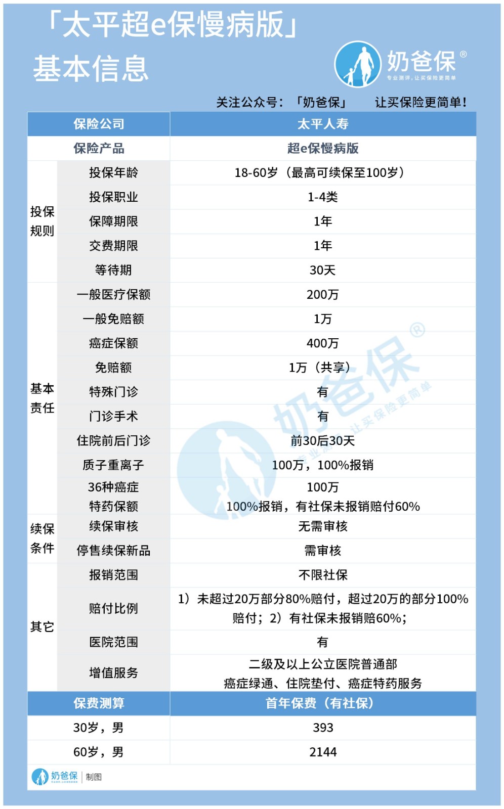 接下来奶爸将从四个方面对太平超e保慢病版医疗险展开分析: