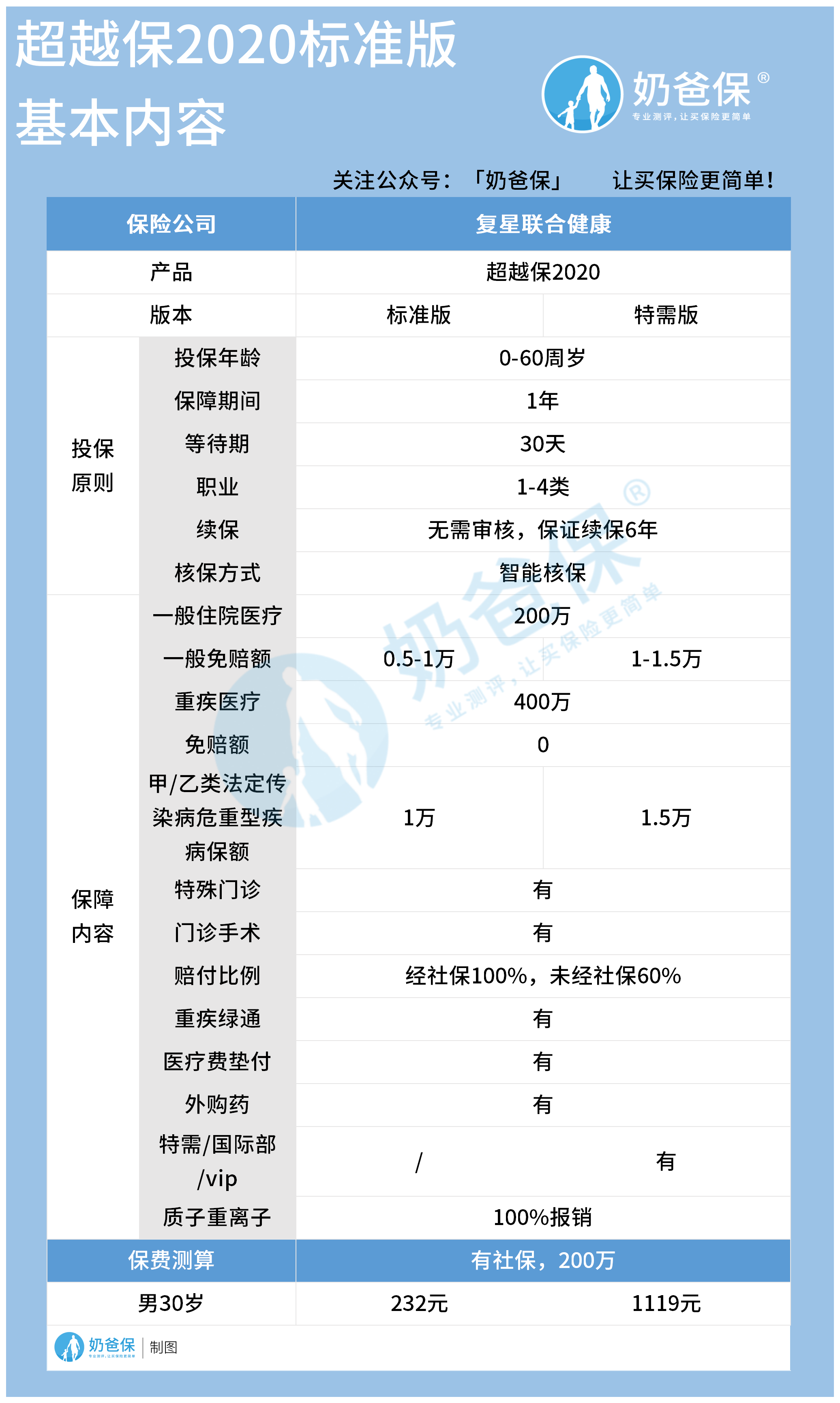 还想知道更多超越保2020百万医疗险详细内容的朋友,可以去看奶爸写的《超越保2020,百万医疗险新选择》这篇文章,奶爸就不在这里一一细讲了。